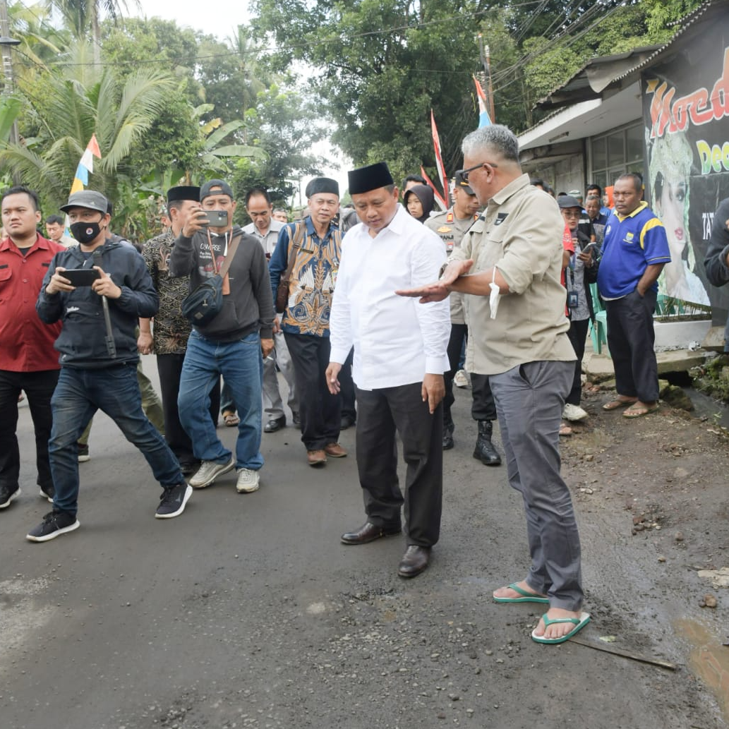 KABUPATEN SUKABUMI – Wakil Gubernur Jawa Barat Uu Ruzhanul Ulum meninjau langsung ruas jalan yang rusak di Kecamatan Cikembar, Kabupaten Sukabumi, Kamis (5/1/2023).