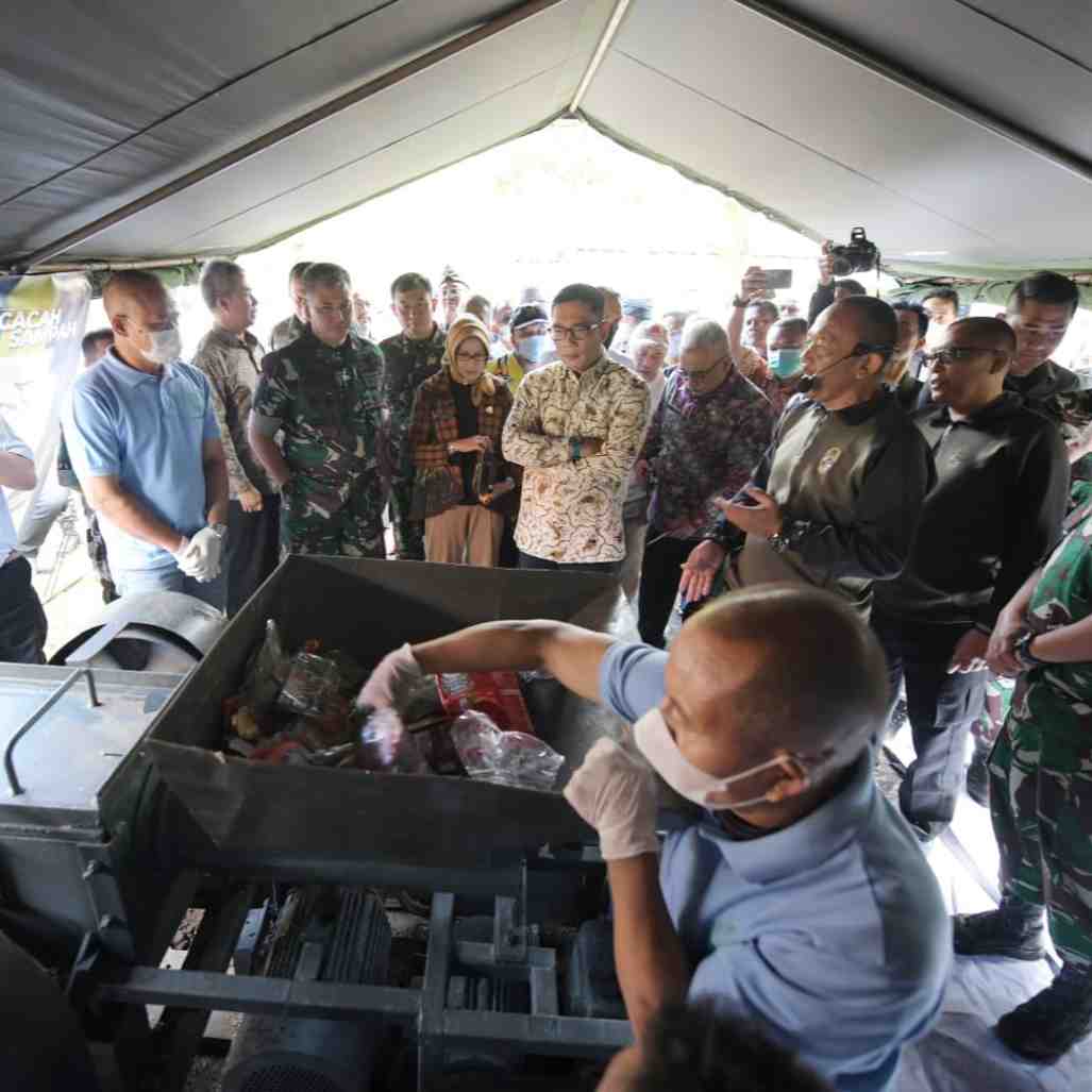 KABUPATEN BANDUNG BARAT -- Gubernur Jawa Barat Ridwan Kamil menyambut baik hadirnya inovasi mesin pengolah sampah hasil karya Kodam III/ Siliwangi.Ridwan Kamil optimistis inovasi pengolahan sampah yan...